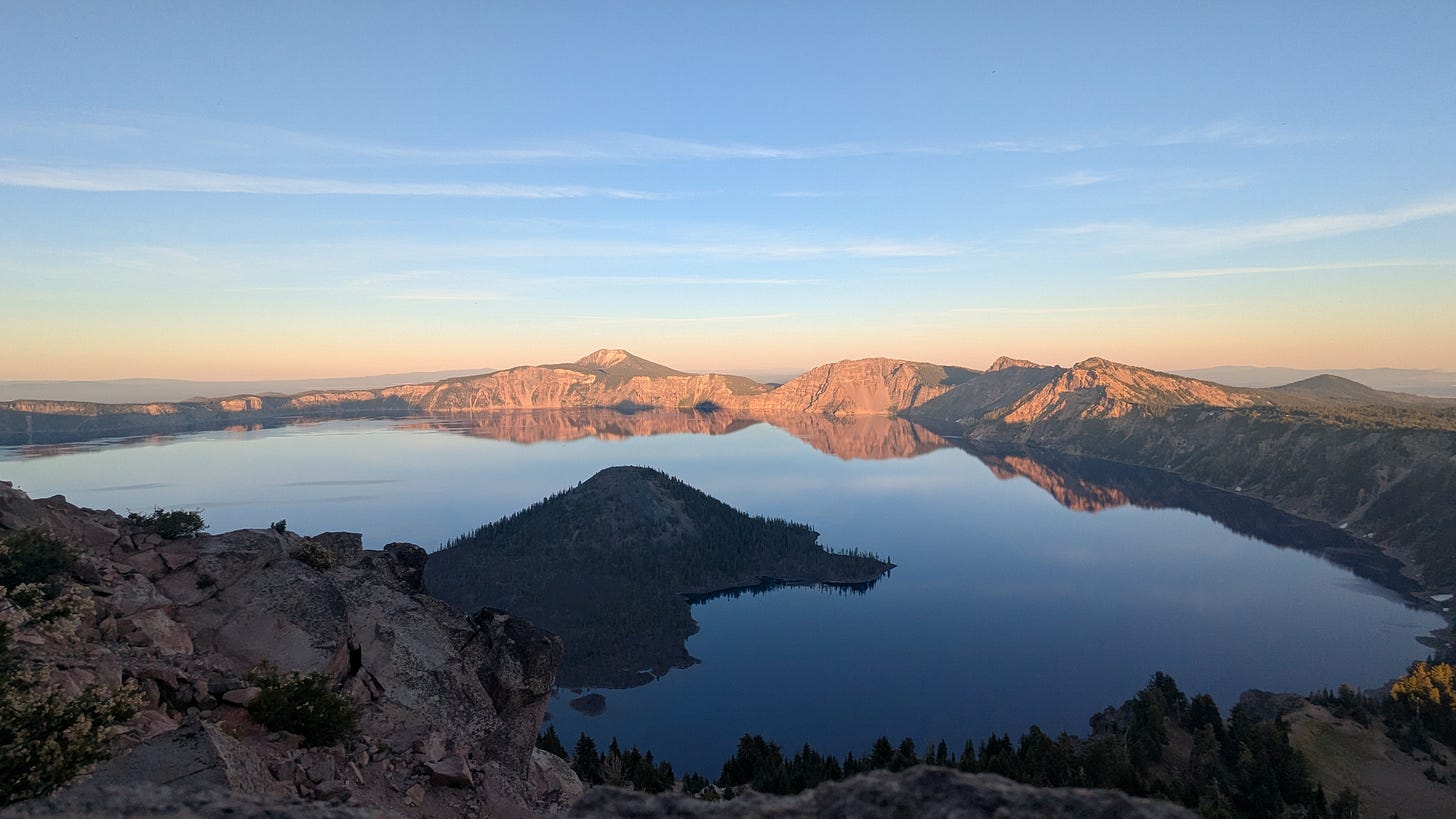 A triangular desk with smoothed, rounded edges sits in the center of the room. Beneath the triangle’s longest side waits a rugged but sturdy chair; its wood’s grain is visible, long, dark, thin parallel lines run the length of the seat.